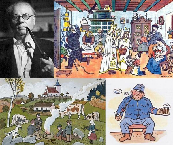 cseh grafikus, író, a Švejk világhírű illusztrátora. Jaroslav Hašek egyik legjobb barátja volt, így az író őt kérte meg műve illusztrálására. A regénnyel ezek a rajzok már végképp összeforrtak. Lada aztán tovább folytatta a Švejk-rajzok készítését, és az 1950-es években megjelentette a regény képeskönyv változatát ötszázharminchét illusztrációval. Akvarelljei is jelentősek, továbbá illusztrálta saját szépirodalmi munkáit is. Élete során mintegy 15 ezer színes és fekete-fehér rajzot készített, 121 gyermekeknek szóló könyvet illusztrált és részben írt.