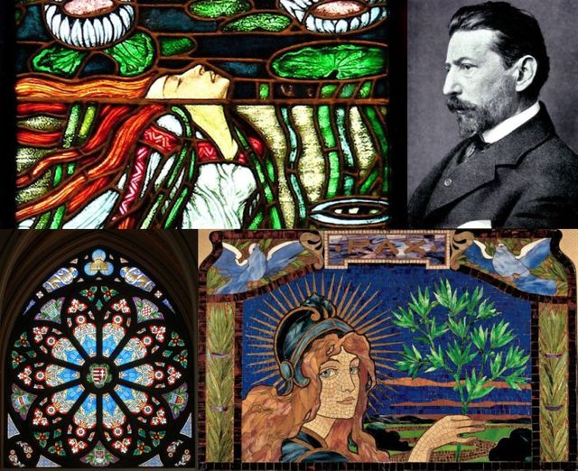 a képen Róth Miksa és néhány alkotása látható