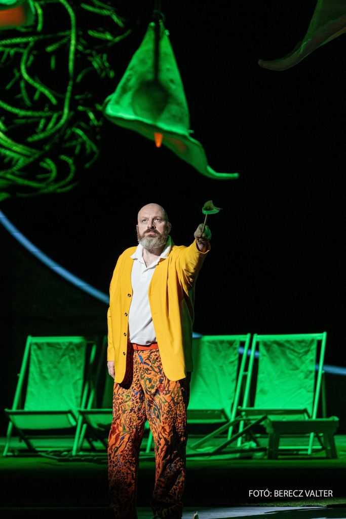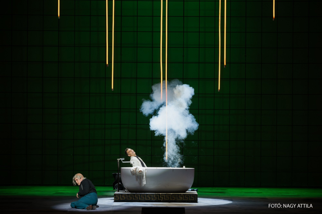A 2015-ös, Michał Znaniecki rendezésében színpadra állított opera idei utolsó előadását láttam április 12-én. 2015-ben már szerencsém volt megtekinteni az operát, így lehetőségem volt arra is, hogy egyfajta összehasonlítást tehessek. Az új szereplők beállása, illetve a bemutatón és a jelen szériában éneklők tolmácsolásának összevetése alkalmat ad arra (is), hogy egy mű előadása hogyan válik érettebbé. A rendezés ha nem is hagyományos, de még elfogadható azok számára is, akik a rendezői színház túlkapásait érthetetlennek vélik. Faust a darab elején tolószékben ül (érdekes lenne összeszámolni, hány operában ír elő a rendező tolószéket), idős ember. A szereplők többnyire hétköznapi jelmezben vannak, Znaniecki tehát a jelen korba helyezi a történetet, a bár villogó cégére, a golfpálya is ezt mutatja.