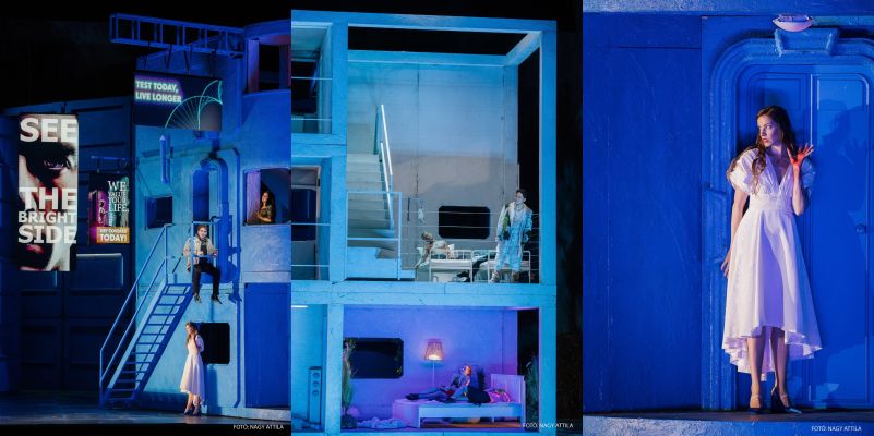 A rendezés Almási-Tóth András munkája (aki a szöveget is jegyzi) 2023. május 13-án láthatta először a publikum. A nyitány alatt a történetet olvashattuk, a tüllfüggöny mögött Ilia és Idamante feküdt egy ágyban. A Rózsalovagban indokolt a nyitó jelenet, de kötve hiszem, hogy egy ókori történet elbírja ezt a képet. Elektra egyik keze véres, és szigorúan maga felé tartja, hogy a nézőnek kétsége se legyen a nő természetéről. Kissé szájbarágósnak véltem a kéz véresre festését.