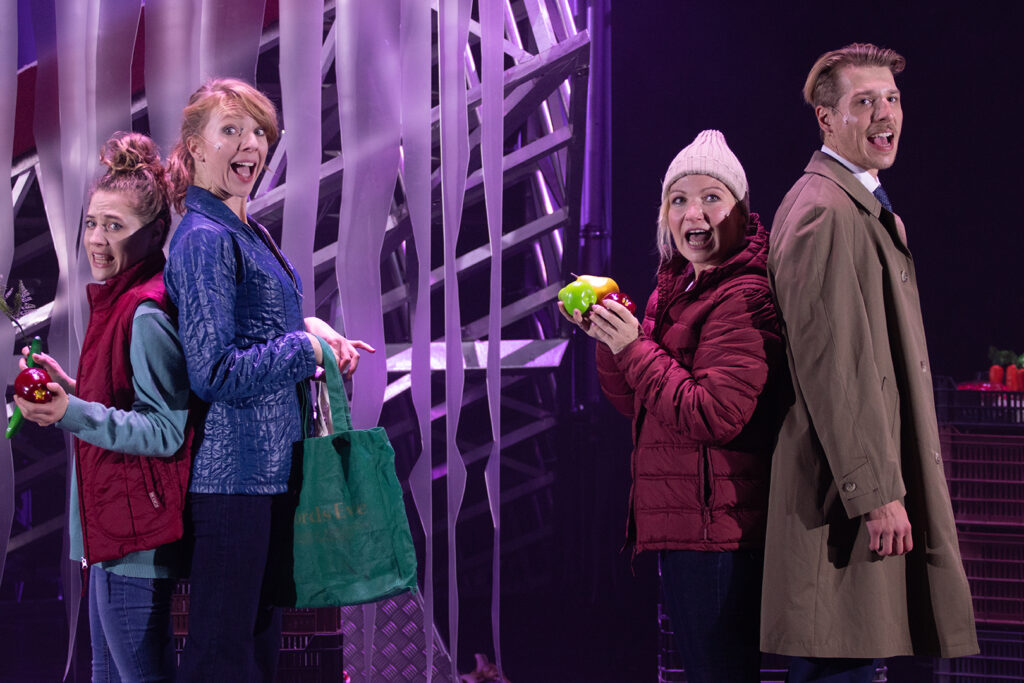 Az előadás rendkívül élvezetes és unikális volt. A kis számú társulat tagjai közül többen nem csak egy szerepet alakítanak. Emlékezetes Spolarics Andrea és Bohoczki Sára sokféle alakja. Gyors váltások az öltözetekben (jelmeztervező: Benedek Mari), s máris kész az új figura. A vígopera zenei számait is bravúrosan teljesítik a szereplők, mind egyénenként, mind kórusban (zenei vezető: Furák Péter), (sajnos egy-egy helyen a szövegmondás nem volt elég érthető). Lendületes táncokat tanított be Bodor Johanna koreográfus.