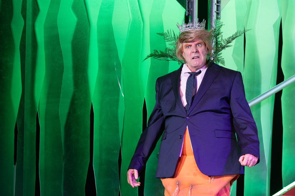 Humorosak voltak az ismétlődő helyzetek, pl. a rosé borról vagy a dohányzás tilalmáról szóló szövegek. Ez utóbbi látványelem is volt a színpadon, később a felkelés zászlóján jelent meg a No smoking! felirat áthúzva. Önkéntelenül is eszünkbe juthat a No kings USA-beli mozgalom, mely éppen az egyeduralomra törő elnök ellen indult, tiltakozásokat, felvonulásokat szervez napjainkban is. A répa, aki egy közülünk, a nép gyermeke, megcsúfolja a demokráciát.