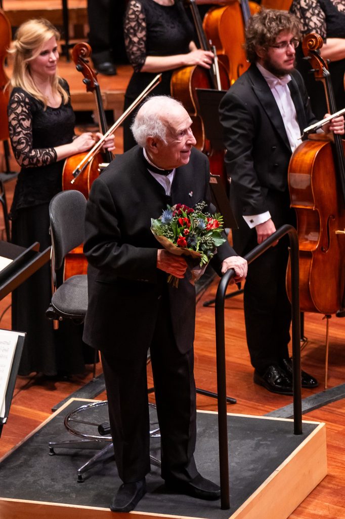 Foster fantasztikus karmester-egyéniség. A művész életkorát csak a látványa jelezte: az első részben nem állt fel a székről és nem ment ki a színpadról a két mű között. Hihetetlenül jó, feledhetetlen szimfóniát kaptunk, amelyhez a MÁV Szimfonikus Zenekar is partner volt. Lelkesen játszottak, követték a mester utasításait.